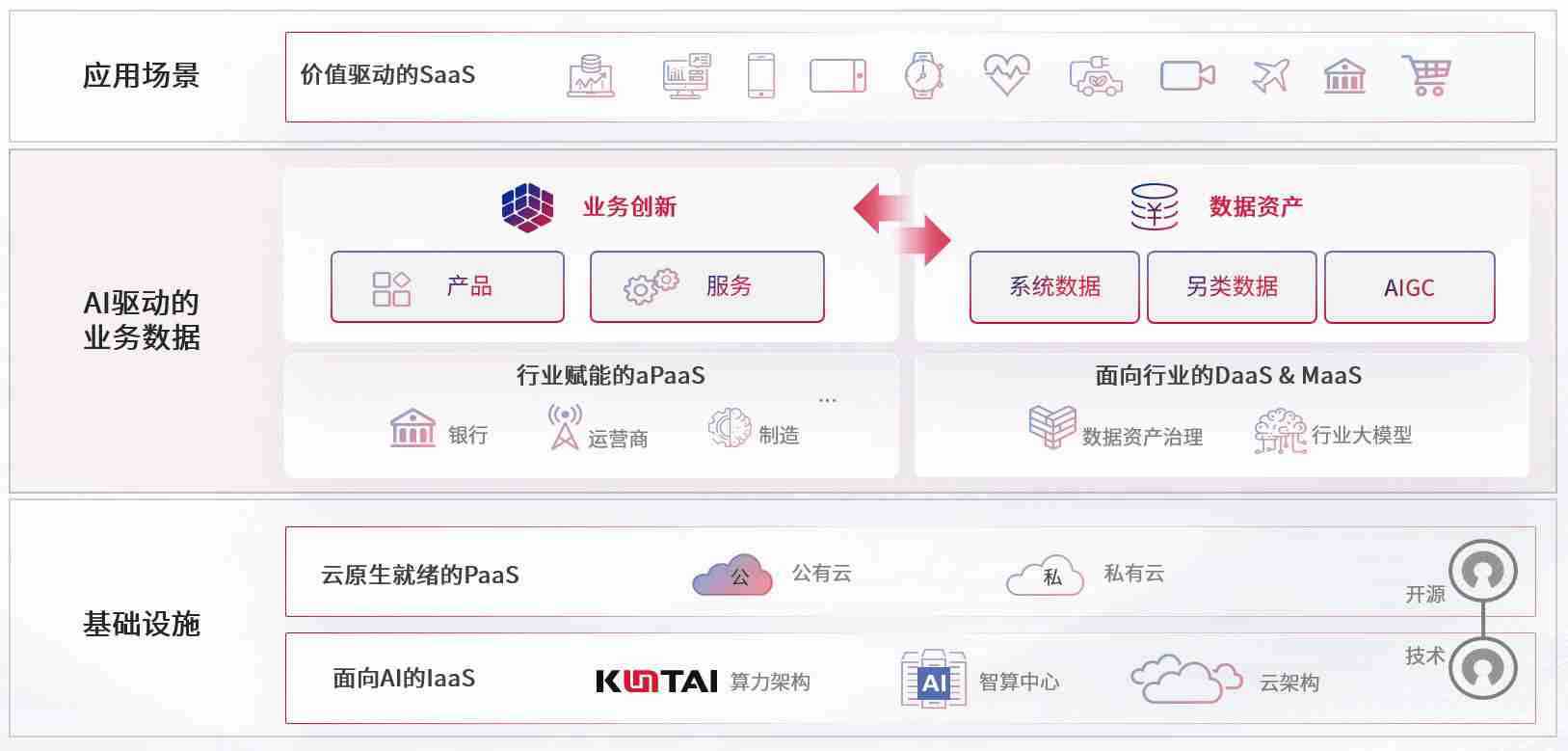 数字时代,,,,围绕企业数字化转型的关键要素,,,抢庄牛牛数码开创性的提出数云融合战略和技术体系框架,,着力在云原生、、、、数字原生、、、、AI原生和信创产业上架构产品和服务能力,,为处在不同数字化转型阶段的快消零售、、汽车、、、金融、、、、医疗、、、、政企、、教育、、、运营商等行业客户提供泛在的敏捷IT能力和融合的数据驱动能力,,构建跨界融合创新的数字业务场景和新业务模式,,,助力企业级客户建立面向未来的核心能力和竞争优势,,,全面推动社会的数字化、、、、智能化转型升级。。。
